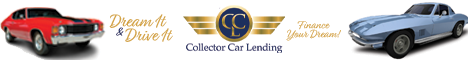 To apply for financing on a classic vehicle, exotic, or muscle car click the banner below to be taken to collector car lending's application page and complete the application. This finance company requires a credit score over 600, 10% down, and a loan amount larger than $7,500.